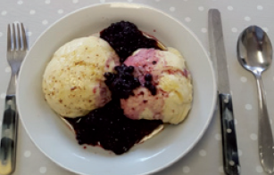 Milch und Buttermilch leicht erwärmen. Zucker, 2 EL Mehl und Hefe einquirlen. Margarine erwärmen. Mehl, Eier, Margarine und Milchgemisch ordentlich verkneten. Der Teig darf nicht an den Fingern kleben, sonst muss noch etwas Mehl dazu. Den Teig dann ca. 30 Minuten ruhen lassen. 15 bis 20 kleine Teigbällchen formen. Nochmals ruhen lassen. Klöße in Dampfbad garen.